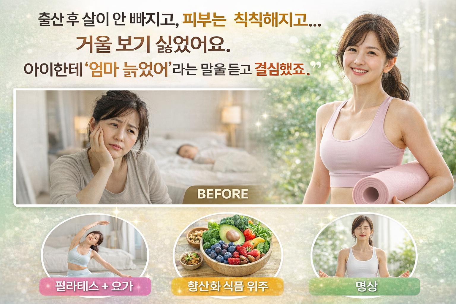 "출산 후 살이 안 빠지고, 피부는 칙칙해지고... 거울 보기 싫었어요.